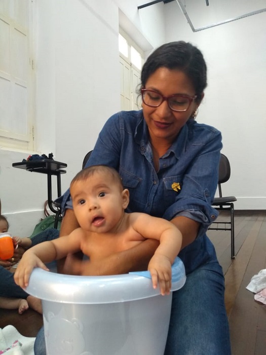 “Esse vínculo é absolutamente necessário e é importante a mulher saber também que faz pontes. Essa mulher precisa ser cuidada e precisa pedir apoio. A gente é constituída pra fazer tudo e uma das coisas que a gente precisa aprender de maneira urgente é pedir e as pessoas que nos rodeiam precisam também entender as nossas necessidades”, disse a psicóloga Edileuza, durante a oficina, ao destacar a importância da rede de apoio em torno da mãe, para que ela possa se dedicar exclusivamente ao filho nos primeiros meses, sem ter que ficar se sentindo culpada por não conseguir fazer as demais atividades domésticas.