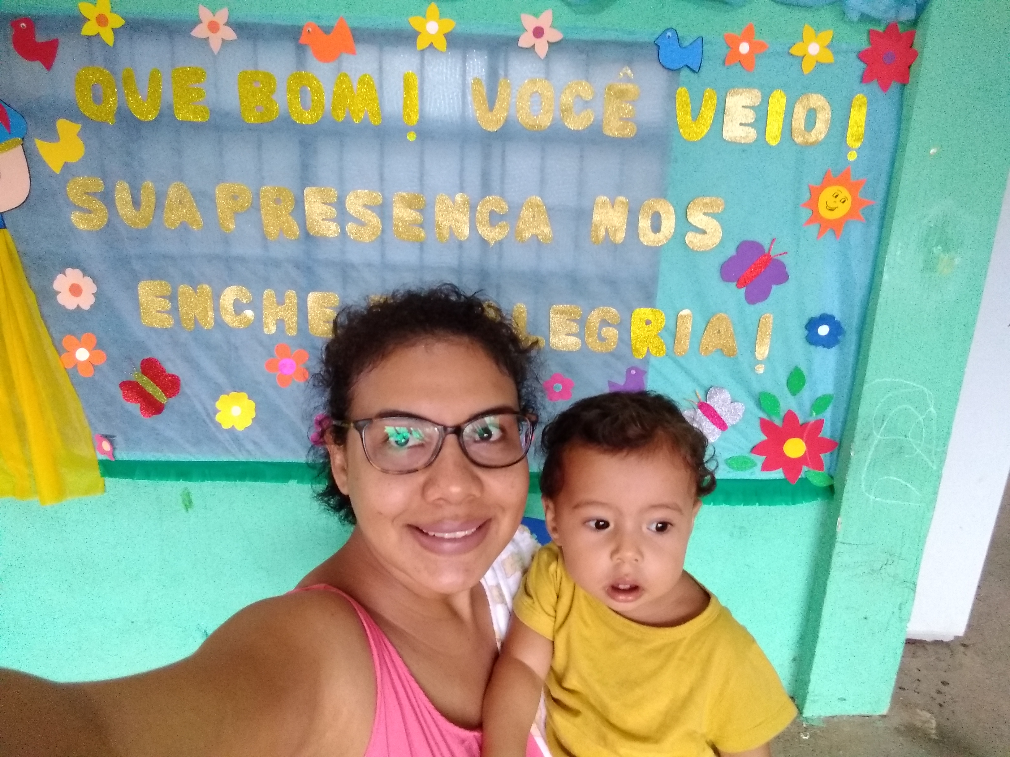 Um dia antes de sair a segunda chamada, meu marido, Laura e eu fomos conhecer a unidade e achamos o local bacana e as pessoas atenciosas. No dia seguinte, saiu o resultado positivo e voltei lá com Laura para efetivar a matrícula. Aproveitei para conversar mais com a diretora, a coordenadora e outras funcionárias, todas bem prestativas. A Laura já conheceu um amiguinho de turma e ficou interagindo… No mesmo dia, fui com Laura e minha irmã comprar os materiais solicitados naquela euforia de mãe de primeira viagem (kkkkk).